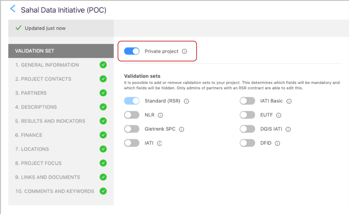 Note: Akvo promotes transparency and the private project setting is meant for projects that contain sensitive information only.