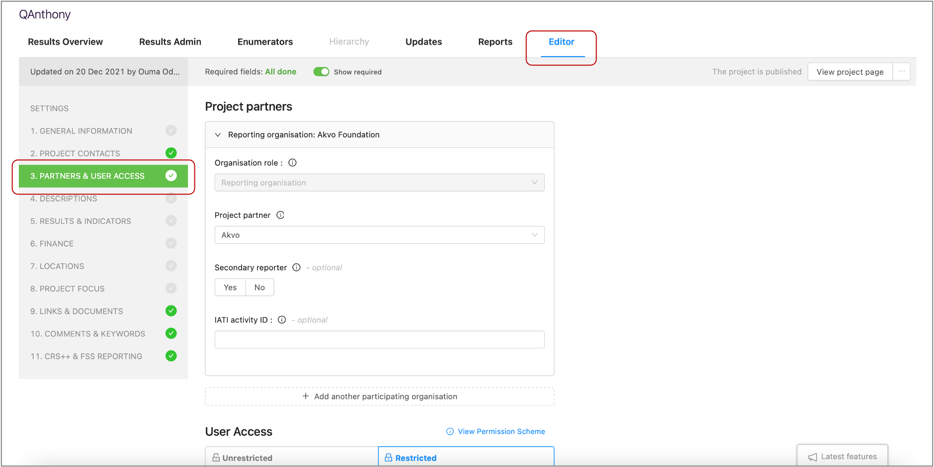 Go to the Editor and from the menu on the left, go to section 3. Partners & User Access.