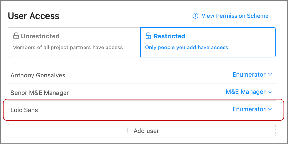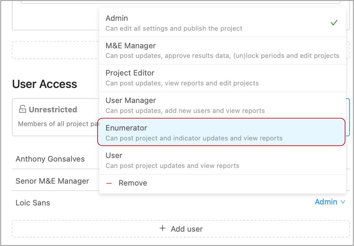 Before assigning specific indicators to an enumerator you need to first add the required enumerator(s) as user