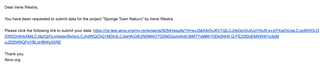 When you need to report on an indicator that has been assigned to you as and enumerator, you will receive an e-mail.
