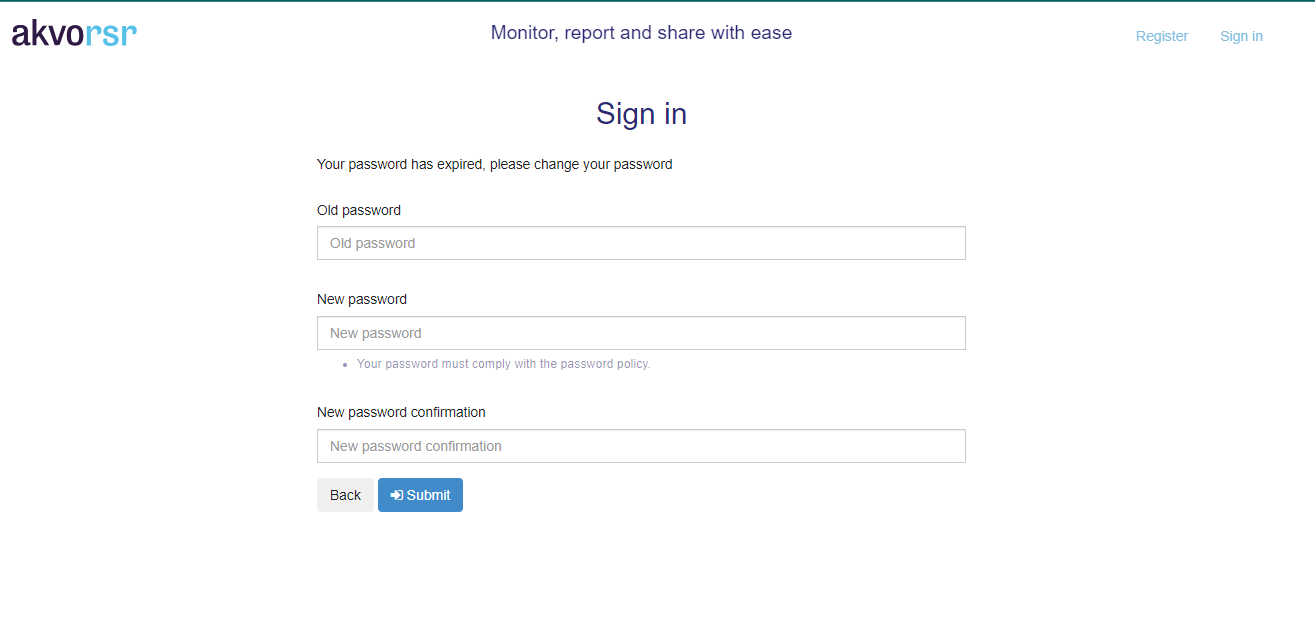 Please note that the password should meet the criteria as defined in your organizations policy